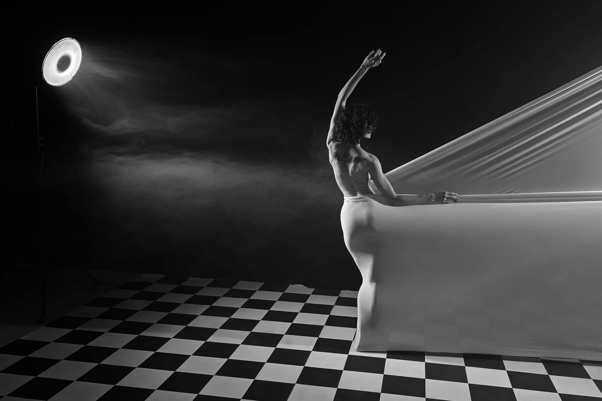 עירום אמנותי בסטודיו מקצועי וסוגי תאורה ואביזרים שונים המעניקה כלים ליצור ולשלב בין האומנות האישית והטכניקות המתקדמות בצילום.